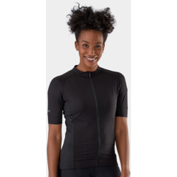 An eco-conscious women's bike jersey that offers versatile performance with comfortable materials in a fitted cut.